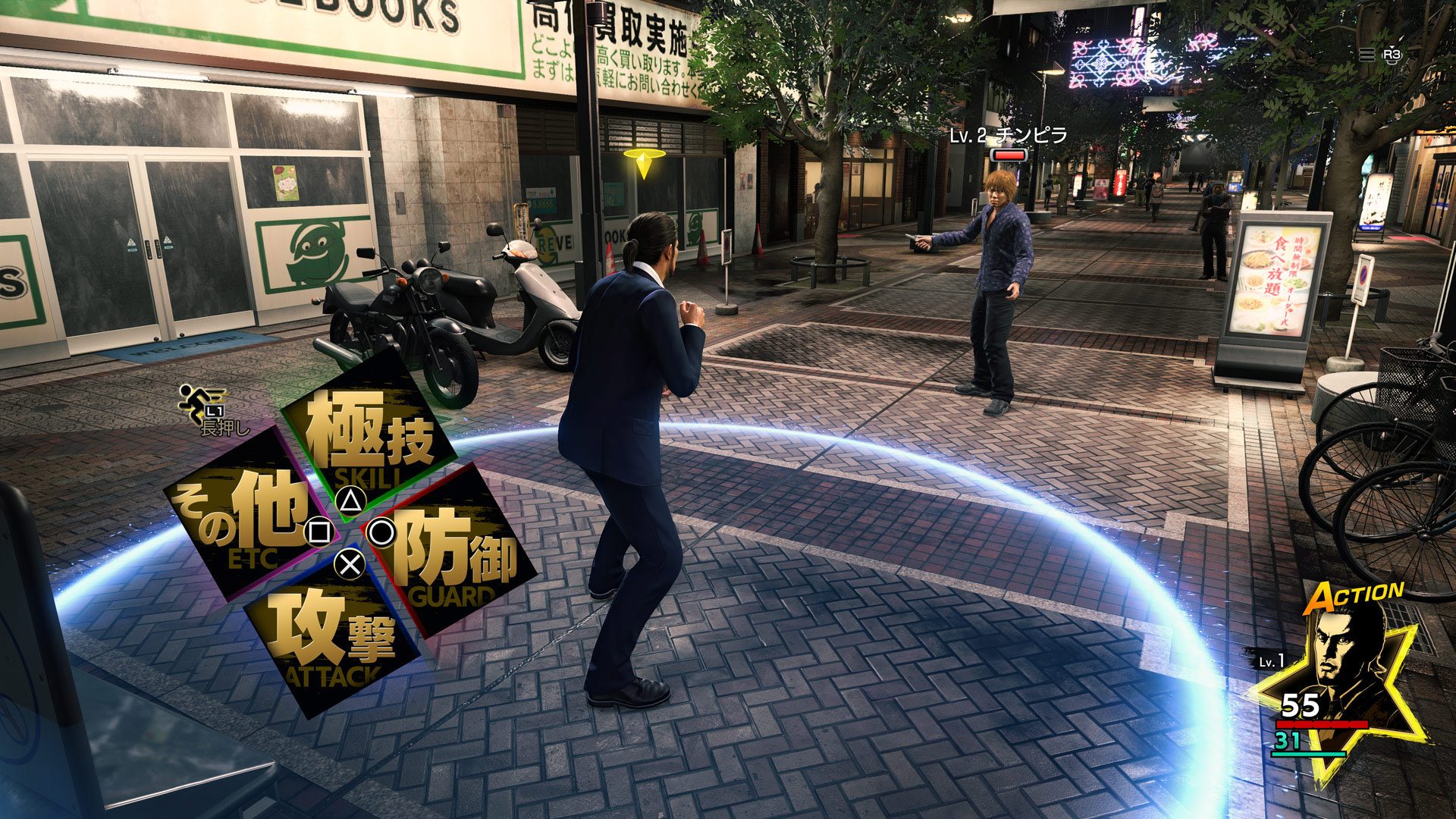 本作的「新動態指令RPG戰鬥」是《人中之龍》系列特有的戰鬥系統,採用了人人都能輕鬆上手的回合制戰鬥。玩家須善用會隨時變化的城市與人物狀況使出生動有力的動作,兼具戰略性與高度動作性。玩家將可享受到自由度與爽快感大增的刺激戰鬥!