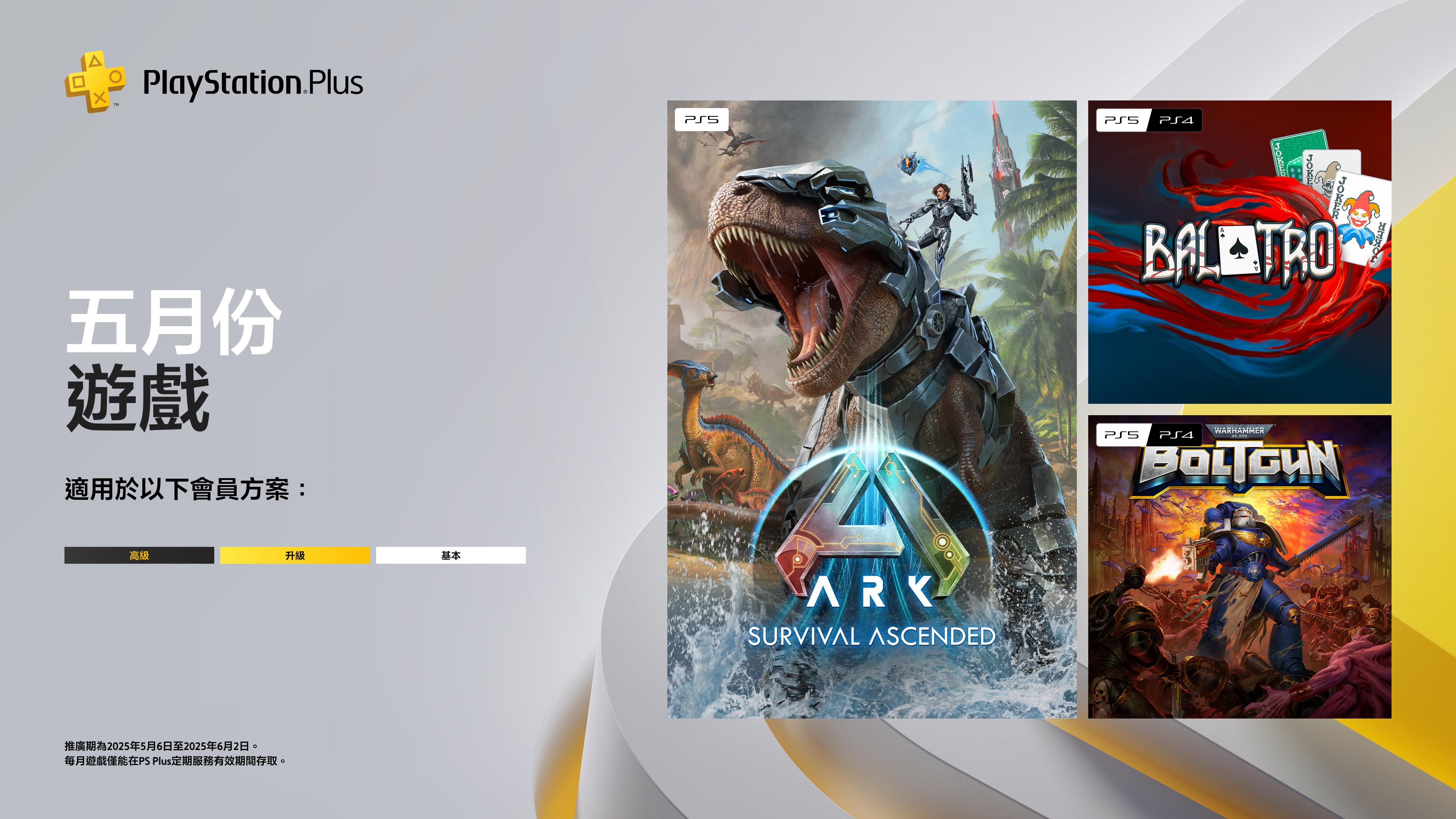 PlayStation Plus會員可在6月2日之前,將《ARK: Survival Ascended》(方舟:生存升級)、《Balatro》、《Warhammer 40,000:Boltgun》新增至遊戲保存庫中。